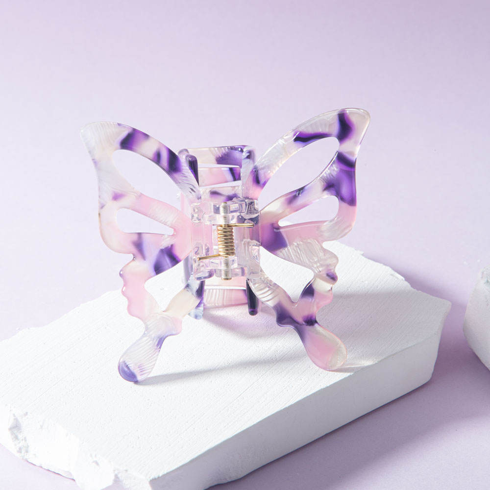 Verleihen Sie Ihrer Frisur mit dieser eleganten Schmetterlings-Haarklammer einen zarten und stilvollen Touch. Mit ihrer glänzenden Marmorierung hält sie Ihr Haar mühelos an Ort und Stelle und wertet Ihren Alltagslook auf.